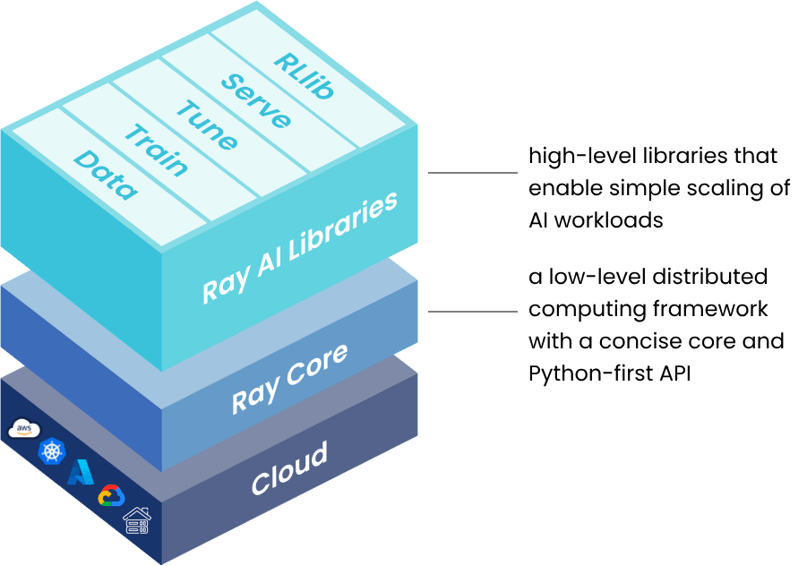 Ray is a framework for scaling AI and Python applications. For AI and ML applications, Ray helps to scale jobs without needing infrastructure expertise:
