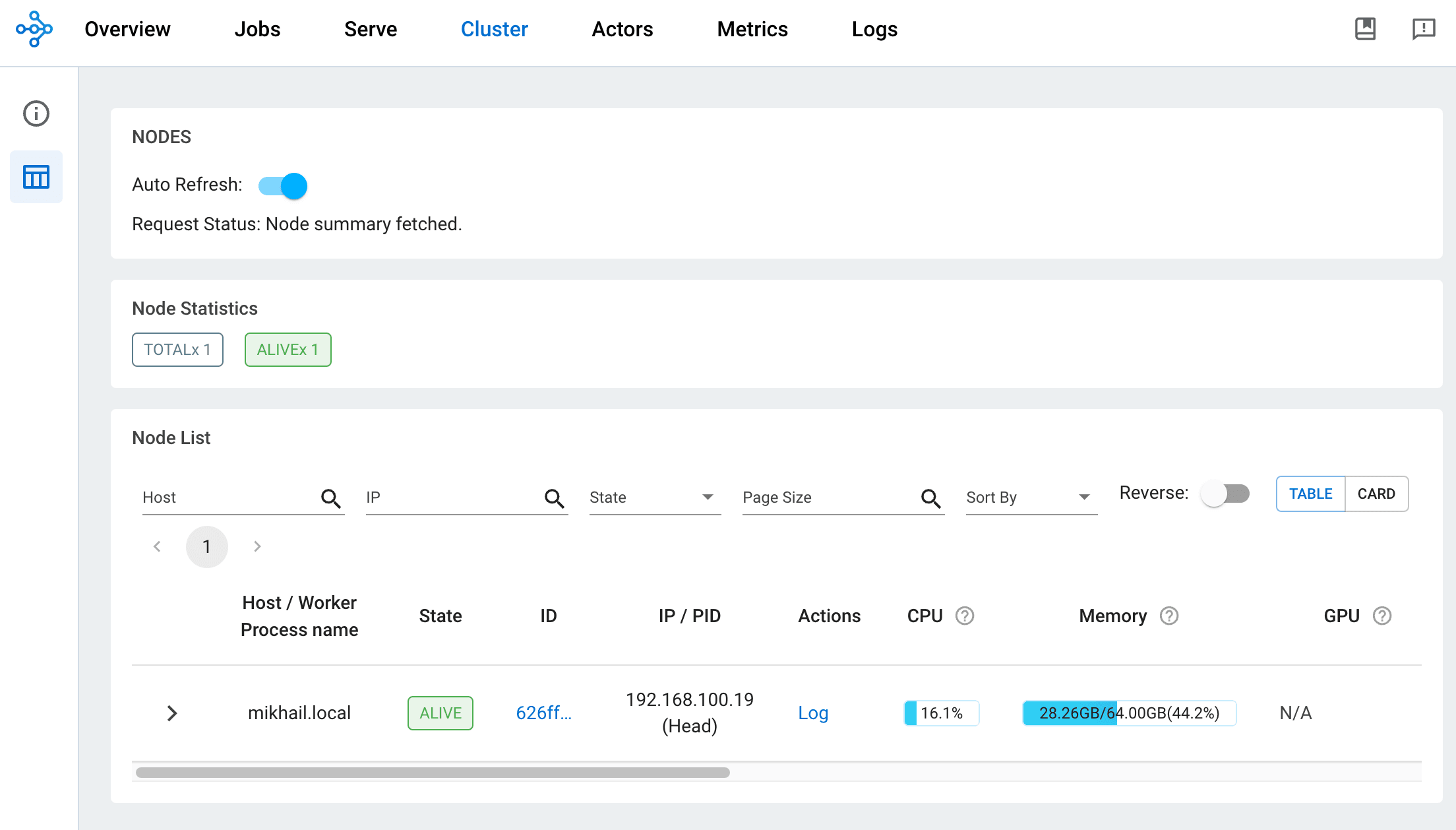 ray start --headThis command starts the Ray cluster with your machine acting as the head node.