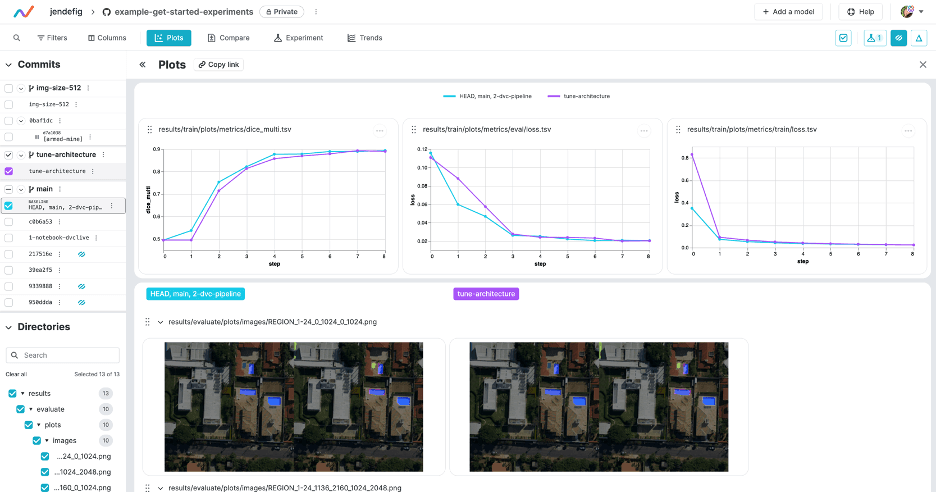 It's safe to say that if you provide the model with a satellite image of any neighborhood, it will pretty accurately identify all swimming pools in that image! And by using DVCLive and Studio, we were able to track and efficiently control the model training process, without squandering expensive training resources on unfruitful training runs.