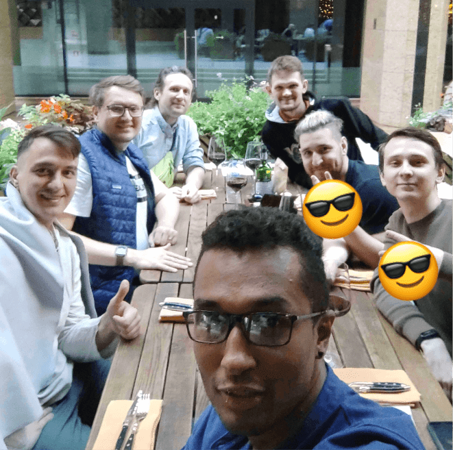 Summer and vaccinations mean travel! ☀️💉 And that travel has enabled some of our team members to get together! Pictured below are Dmitry Petrov, Alexander Guschin, Max Shmakov, Mikhail Rozhkov, Sergey Kryukov, Mikhail Sveshnikov, and Guro Bokum… But not necessarily in that order.
