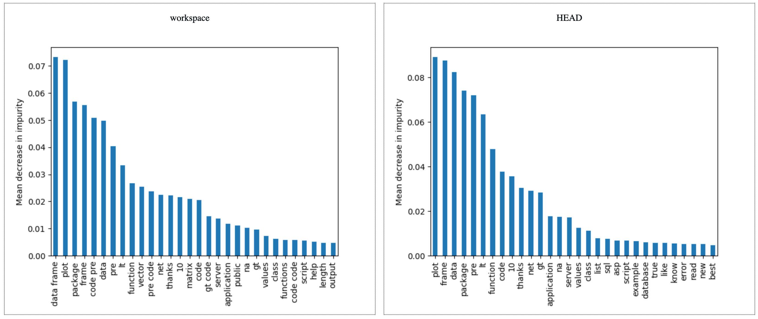 eval/metrics.json roc_auc.train 0.97743 0.98667 0.00924And finally, we can compare all plots with a single command (we show only some of them for simplicity):