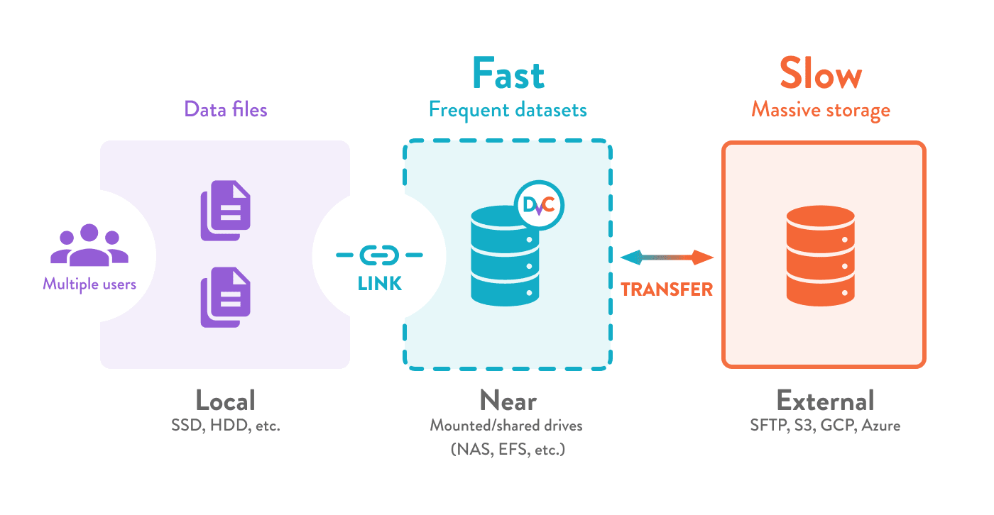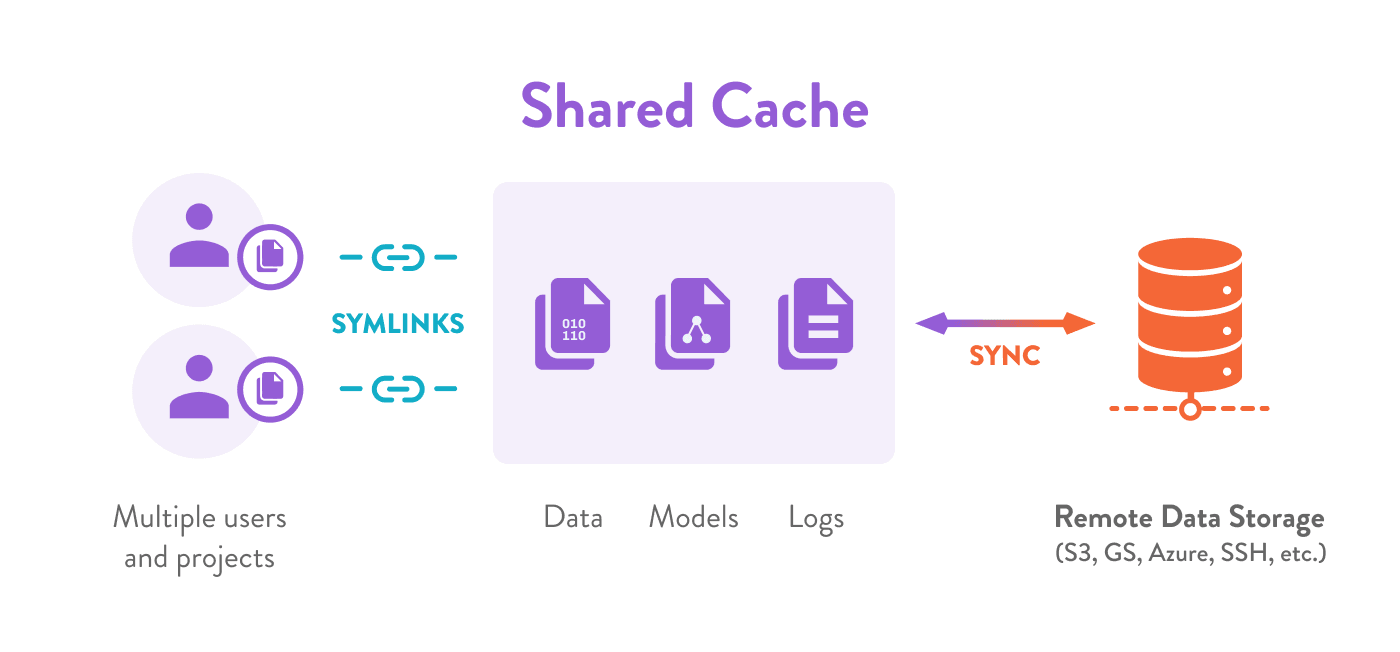 DVC's built-in data caching lets you implement a simple and efficient storage layer globally — for your entire team. This approach can help to